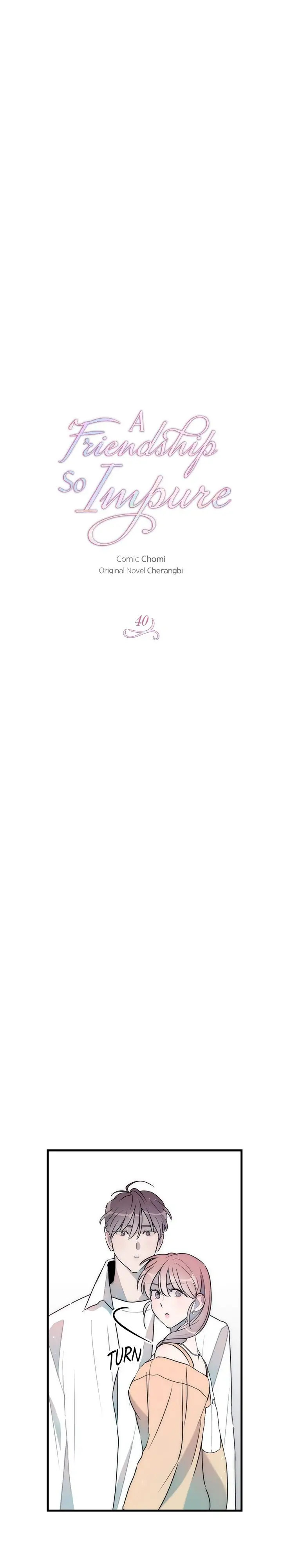 Read the latest manga A Friendship So Impure Chapter 40 at manga18fx . A Friendship So Impure is always updated at manga18fx . Dont forget to read the other manga updates. A list of manga collections manga18fx is in the Manga List menu.