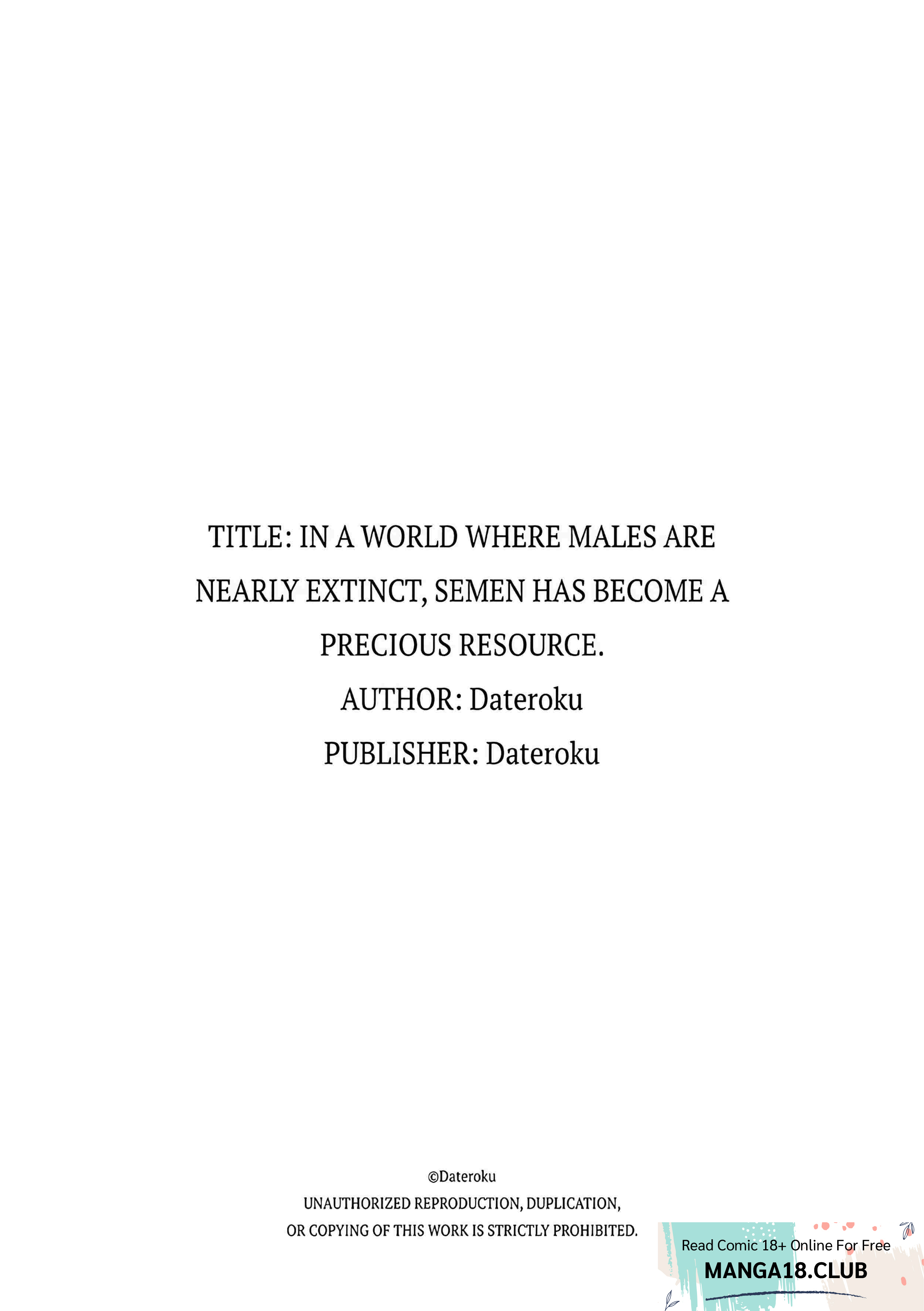 Read the latest manga In a World Where Males Are Nearly Extinct, Semen Has Become a Precious Resource. Chapter 13 at manga18fx . In a World Where Males Are Nearly Extinct, Semen Has Become a Precious Resource. is always updated at manga18fx . Dont forget to read the other manga updates. A list of manga collections manga18fx is in the Manga List menu.