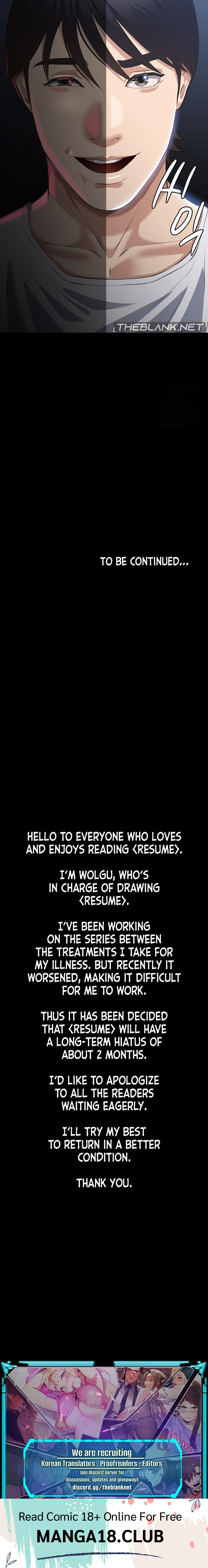 Read the latest manga Resume Chapter 98 at manga18fx . Resume is always updated at manga18fx . Dont forget to read the other manga updates. A list of manga collections manga18fx is in the Manga List menu.
