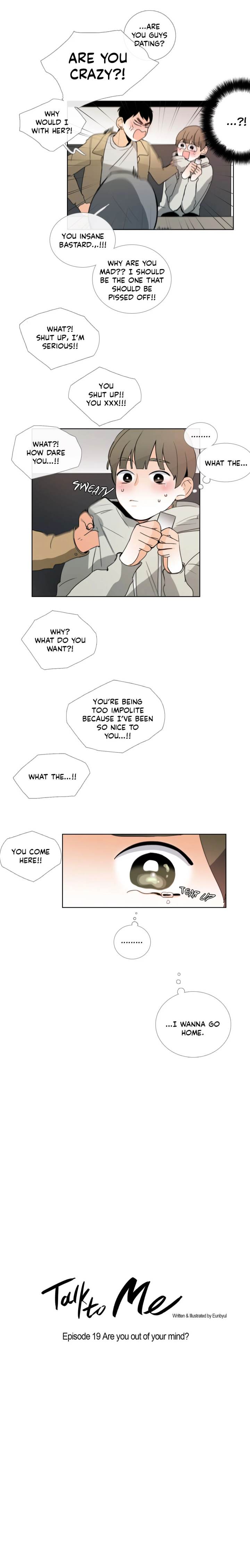 Read the latest manga Talk to Me Chapter 19 at manga18fx . Talk to Me is always updated at manga18fx . Dont forget to read the other manga updates. A list of manga collections manga18fx is in the Manga List menu.