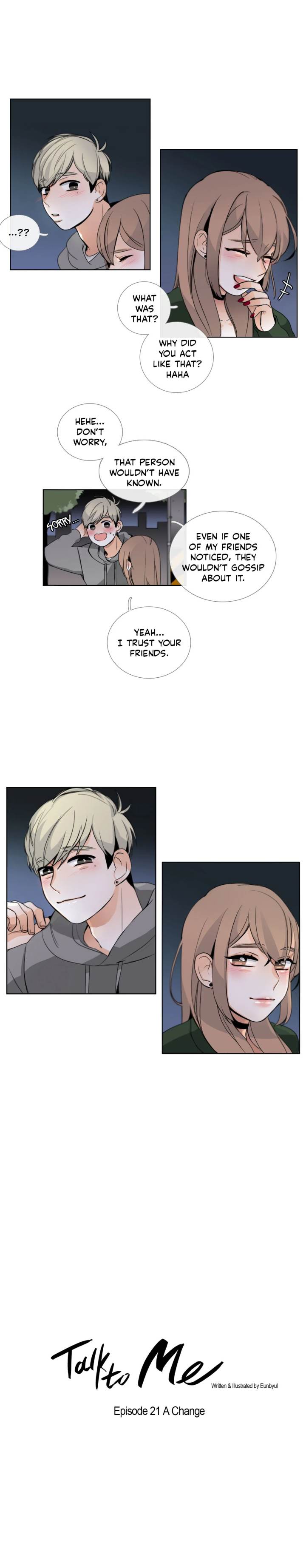 Read the latest manga Talk to Me Chapter 21 at manga18fx . Talk to Me is always updated at manga18fx . Dont forget to read the other manga updates. A list of manga collections manga18fx is in the Manga List menu.